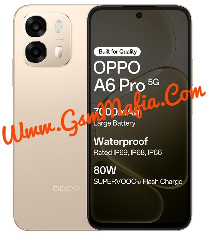 Oppo A6 Pro 5G is Powered by Mediatek Dimensity 6300 (6 nm) Latest Chipset (CPU). It comes with 6GB and 8GB of RAM. Oppo A6 Pro 5G come with 7000mAh non-removable battery and fast charging 80W. Oppo A6 Pro 5G runs ColorOS 15 is based on Android 15 and packs 256GB, 512GB and 1TB of inbuilt storage and  phone have dedicated SD Card slot to Extend device storage.